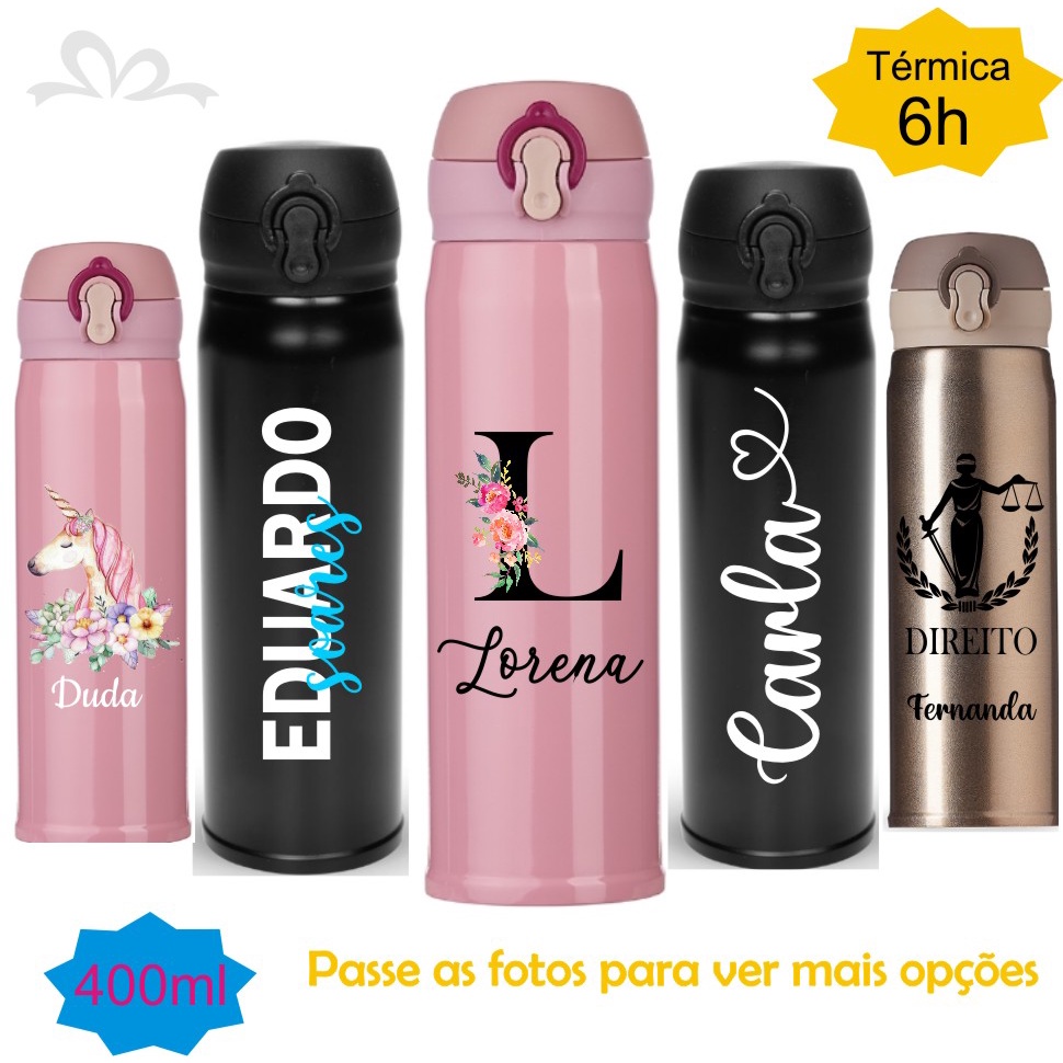 Garrafa Térmica Inox Personalizada com nome 400 ML Squeeze De Aço Inox Inquebrável café chá suco Com Vacuum