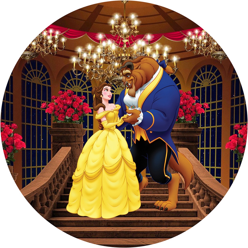Painel Redondo Tecido Sublimado com/elástico Bela e a Fera 05