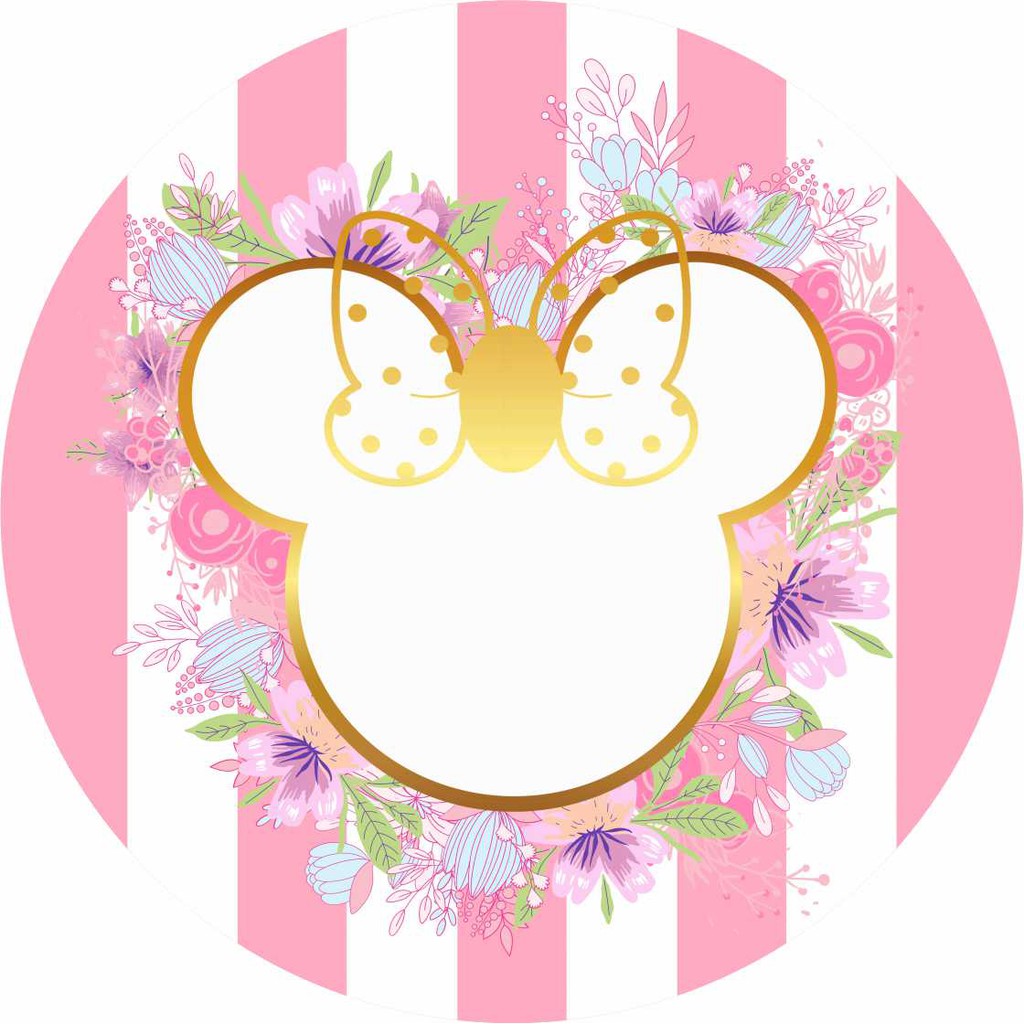 Painel redondo tecido sublimado 3d orelha Minni Rosa - 1,50m x 1,50m com elástico