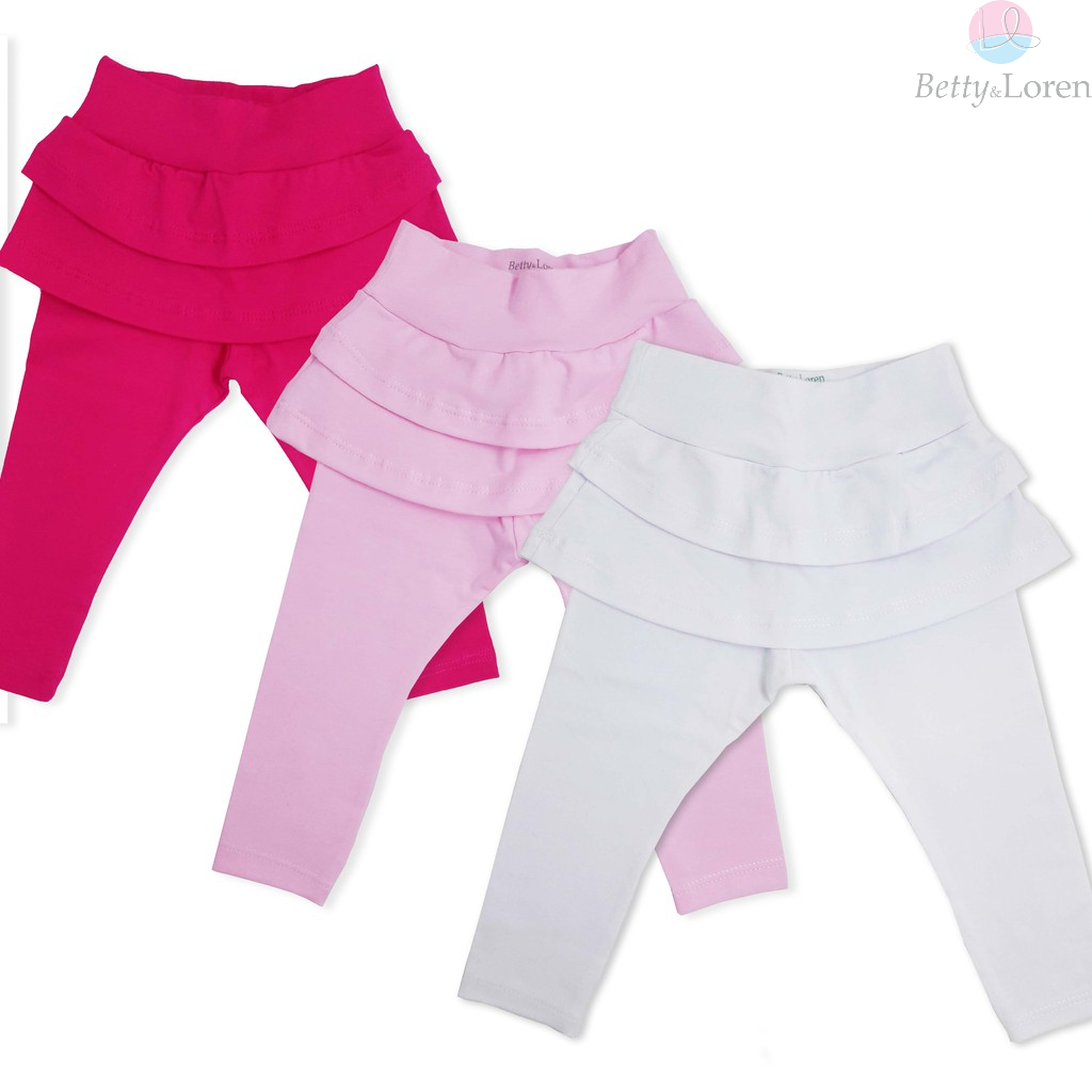 Kit conjunto Infantil com 3 Calça Saia Mijão para Bebê Menina Nenê Feminino Liso e Macio diversas cores e tamanhos do RN ao GG, Betty & Loren