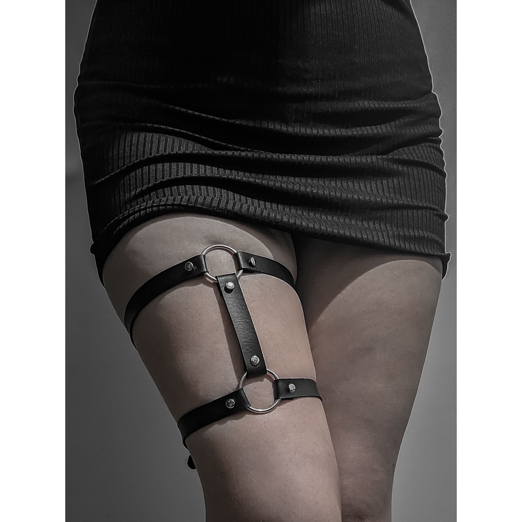 Garter Duplo com Argolas Unitário Perna Coxa Cinta Liga Gótico Punk Lingerie Halloween Fantasia plus size
