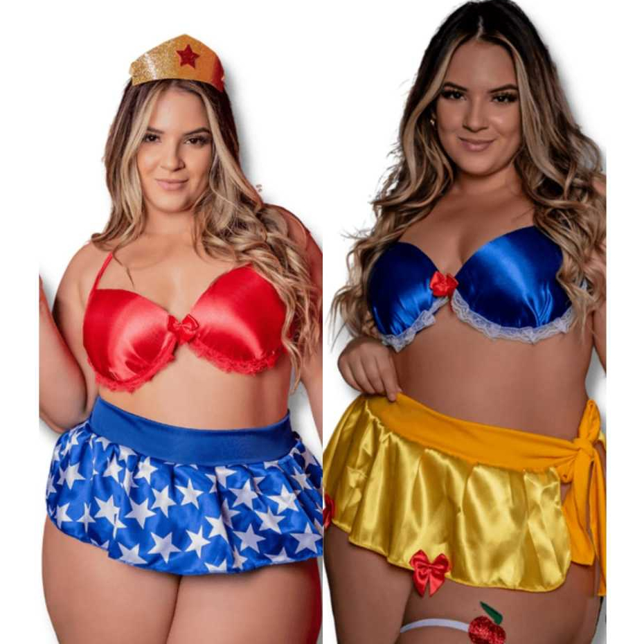Fantasia Plus Size lingerie com bojo / conjunto feminino / Fantasia Erotica/ Conjunto Fantasia Plus