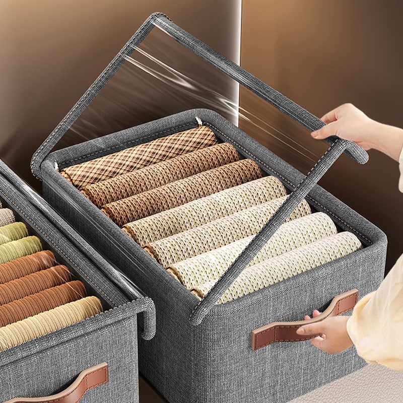 Kit 2 Caixa de Roupa Organizador Cinza Dobrável e Tecido Impermeável 45×28×9cm