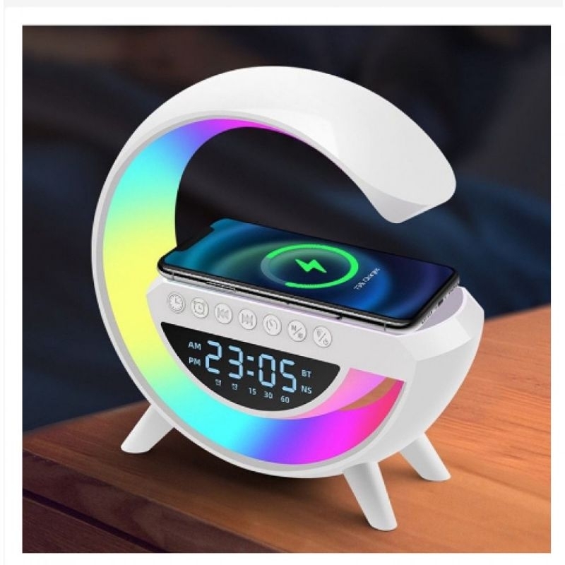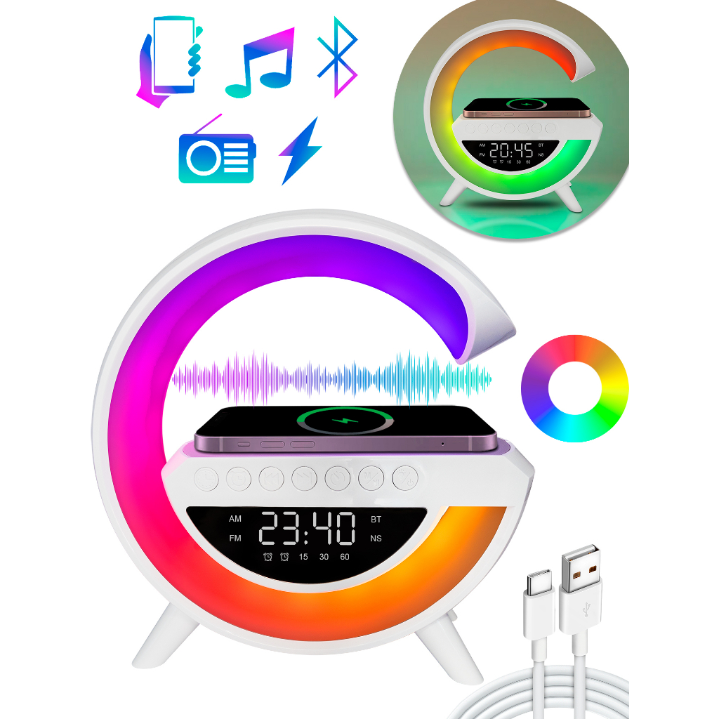 G Speaker Smart Station Luminária Relógio Caixa De Som E Carregador Indução Bluetooth Usb Led Rgb