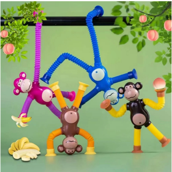 Kit 4 Pop Tubo Estica e gruda Girafa Robô Macaquinho Cachorro Galinha Brinquedo Ventosa Infantil