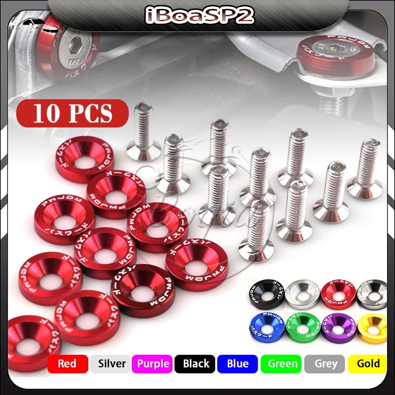 10 Peças M6 Fixadores Modificados Para Carros Arruela De Pára-Lamas Hex Fender Motor Parafusos De Côncavo Arruelas E Alumínio JDM