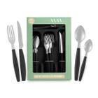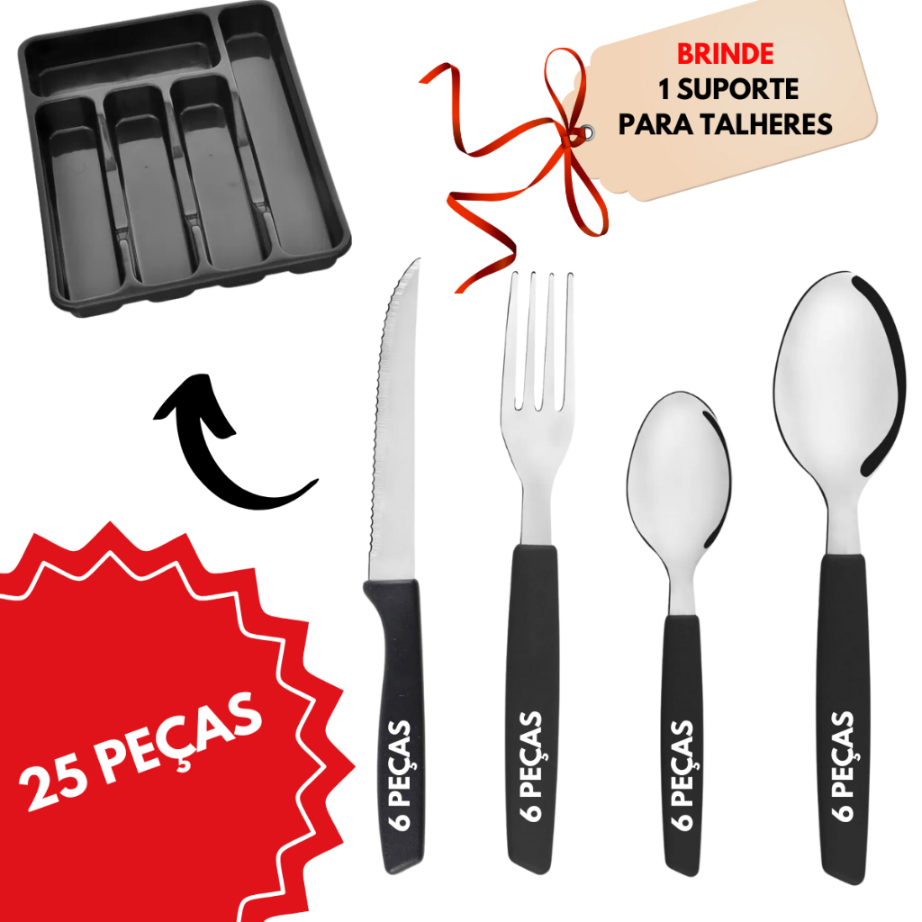 Faqueiro Inox Jogo De Talheres Porta Talher Com 25 Peças Preto E Vermelho