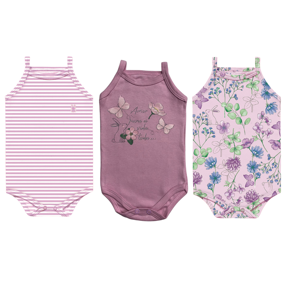 Body Infantil Alcinha Feminino Menina Bebê Bori Roxo Ametista Floral Baby Bebe Bory Fresquinho Verão Kiko E Kika Ref 10217