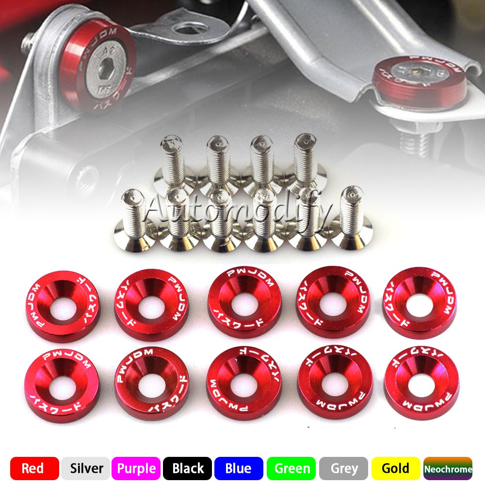10 Peças M6 Fixadores Modificados Para Carros Arruela De Pára-Lamas Hex Fender Motor Parafusos De Côncavo Arruelas E Alumínio JDM