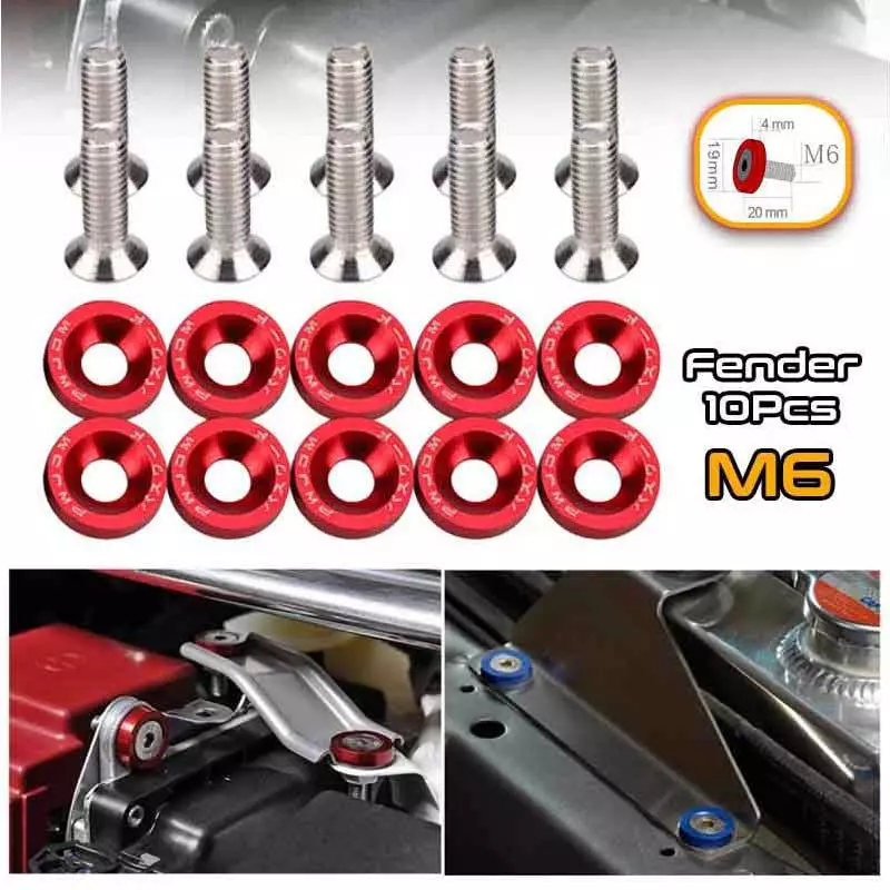 Fender 10pcs M6 JDM Carro Modificado Fixadores Sextavados Modificados Arruela De Pára-Choques Motor Parafusos Côncavos Estilo De
