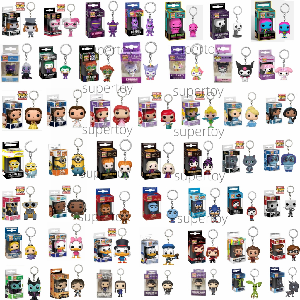 Funko Pop Keychain Disney Stitch Tristeza Parede-E Maleficente Sonic Ariel Belle Aladdin Abu Genie Jasmim Cinderela Anna Tina Miguel Snoopy Sanrio Hello Kitty Kuromi O Escritório Micha