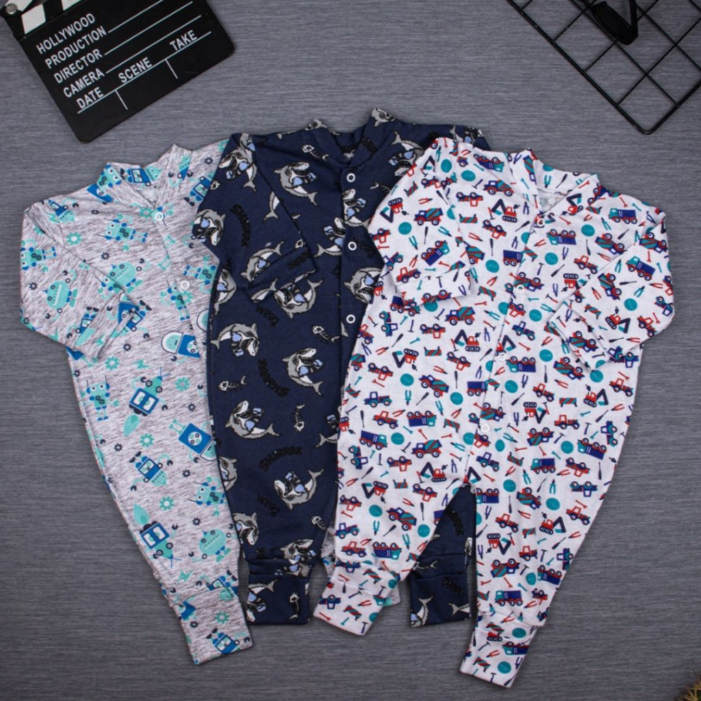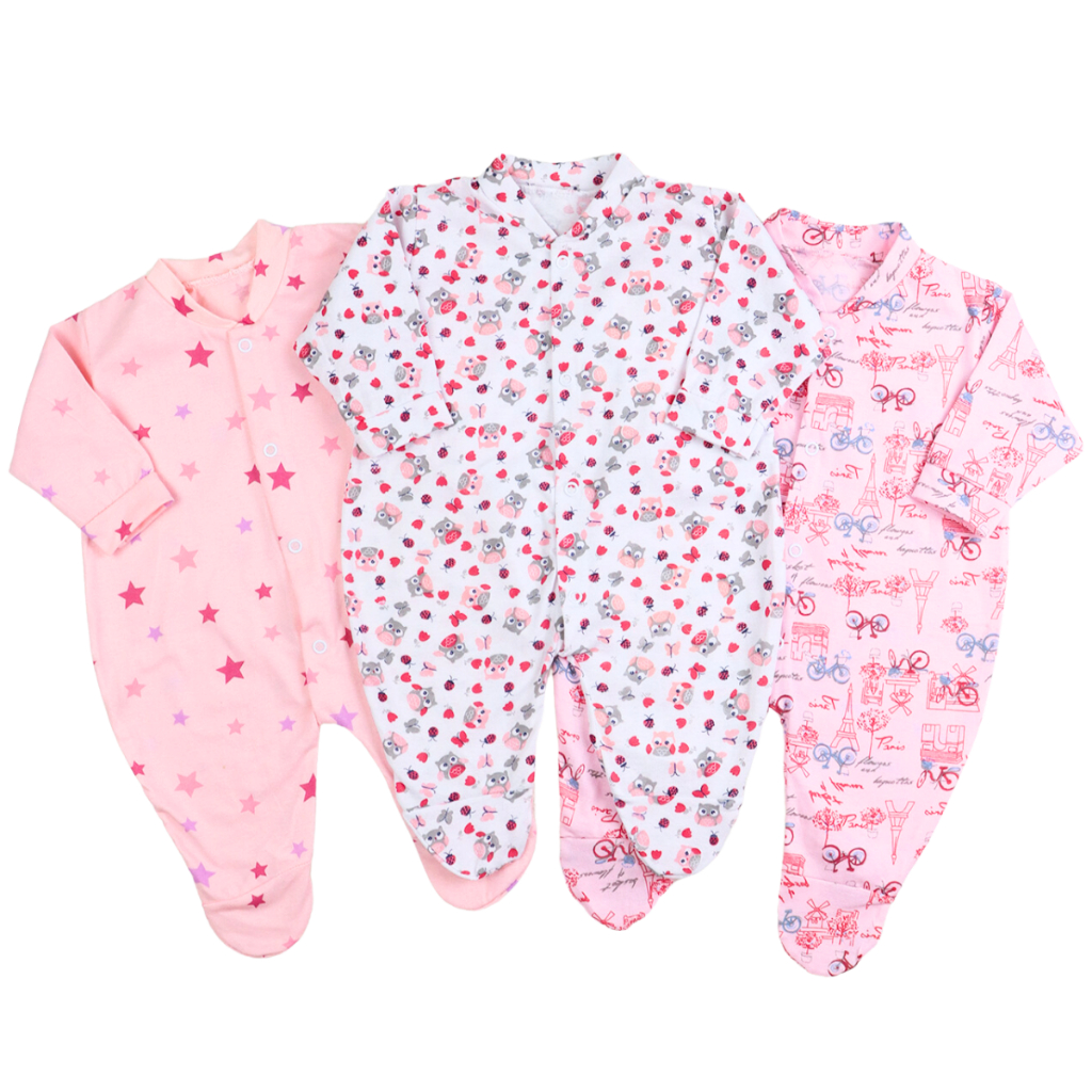 Kit 3 Peças Macacão Estampado para Bebê com Pé - 100% algodão Menina e Menino