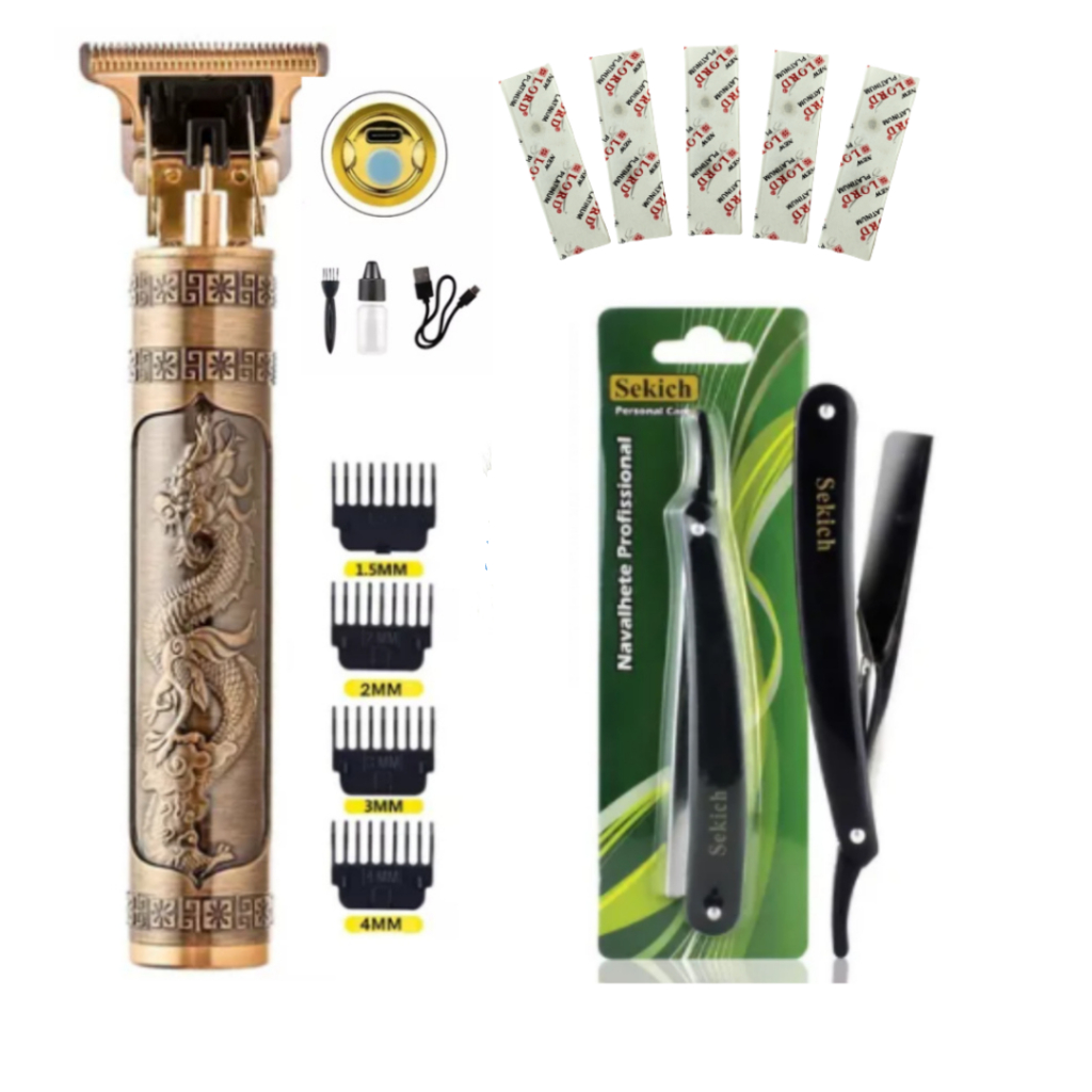 kit Navalha Navalhete + 5 Lâminas + Máquina Dragon Profissional
