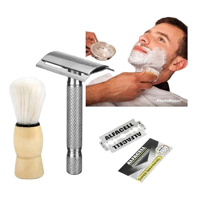 Kit Barbeiro Profissional Navalha Navalhete/ Pincel de Barbear / Barbeador de Inox retro / Lâmina Original