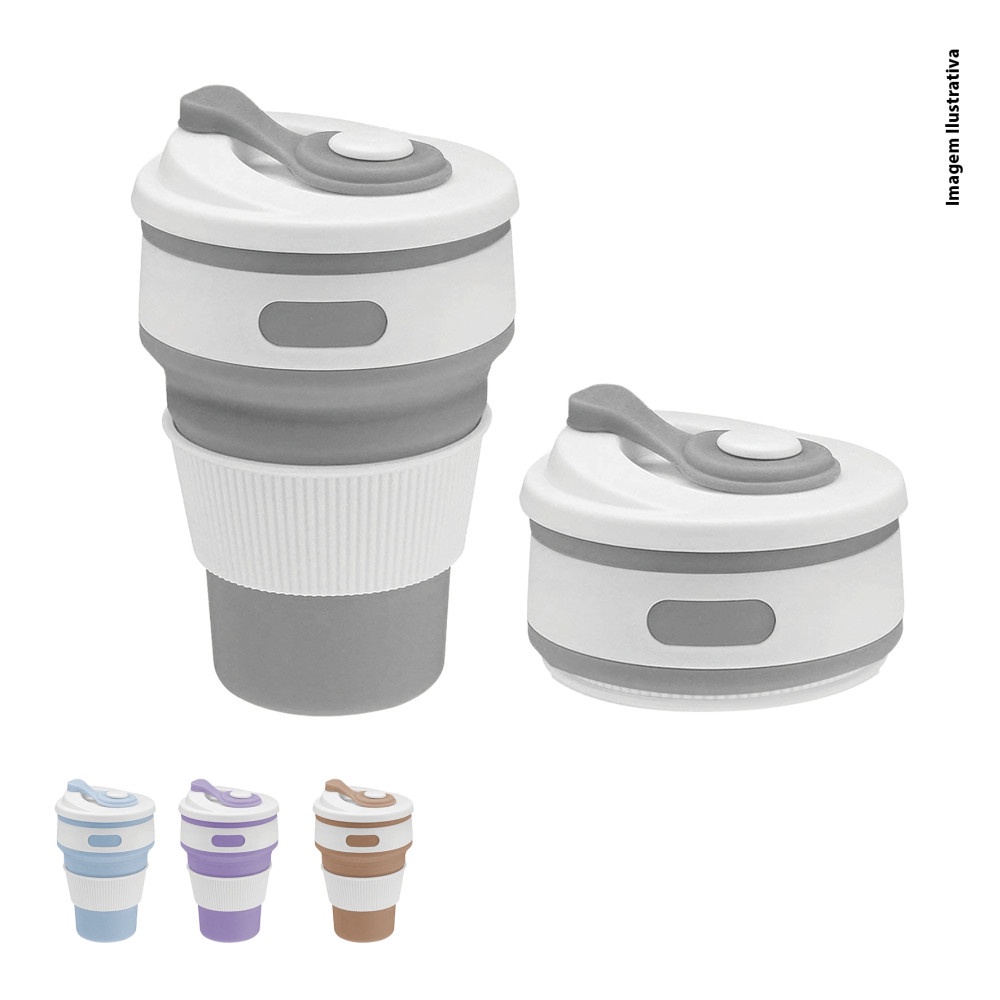 Copo Silicone Reutilizável Retrátil Dobrável C/ Tampa Ecológico 350ml