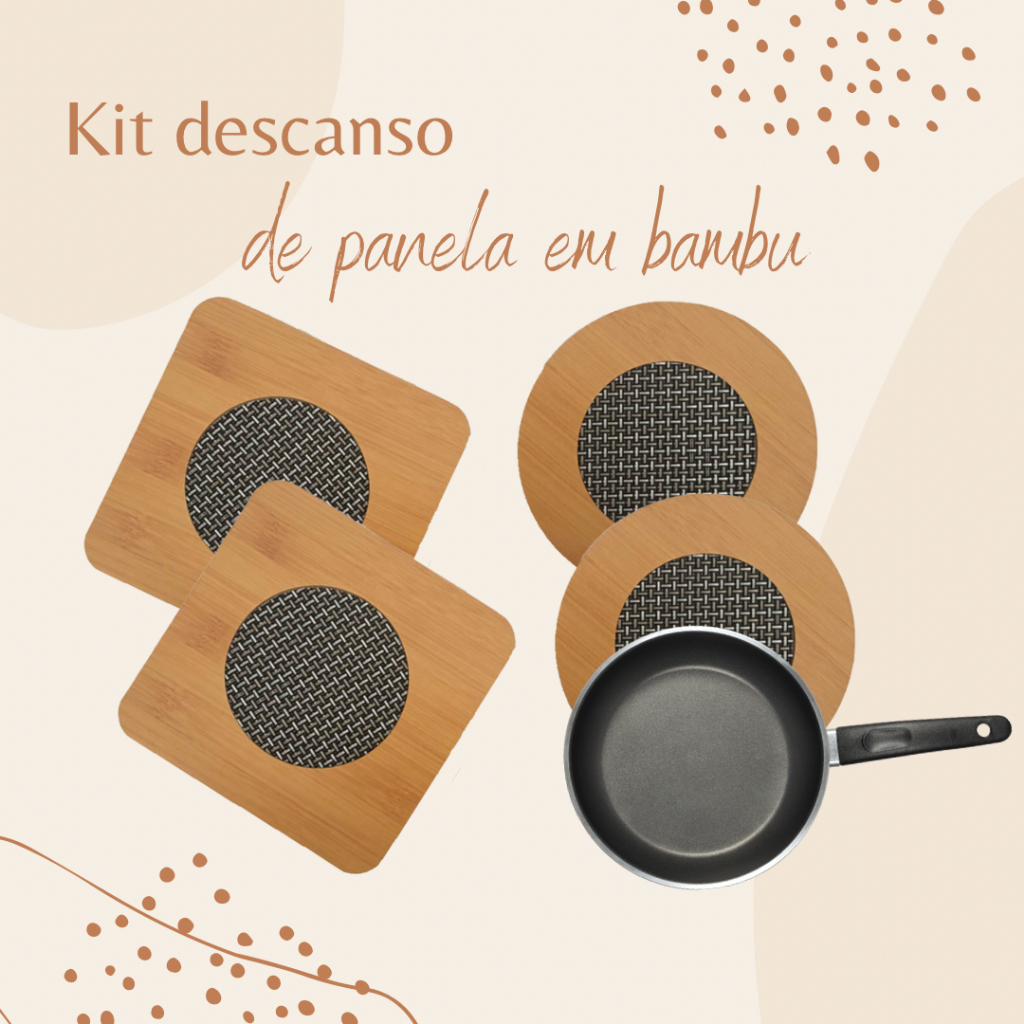 Kit 4 Peças Descanso De Panela Bambu Protege Sua Mesa