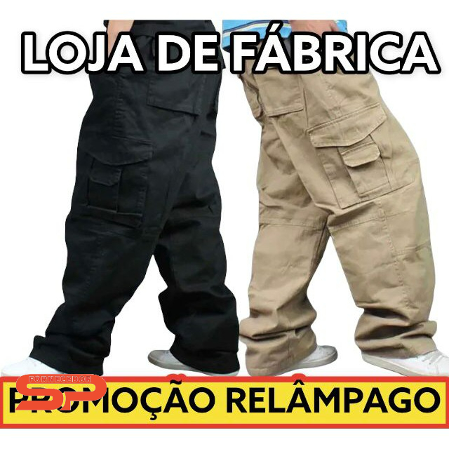 Kit 2 Calça s Cargo Masculina StreetWear 5 Bolsos skate Larga Preta Verde Prata Caqui Bege