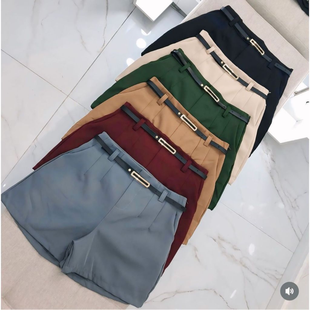 Short Alfaiataria Feminino Zara Social Cintura Alta Com Cinto de Couro Zíper na Lateral
