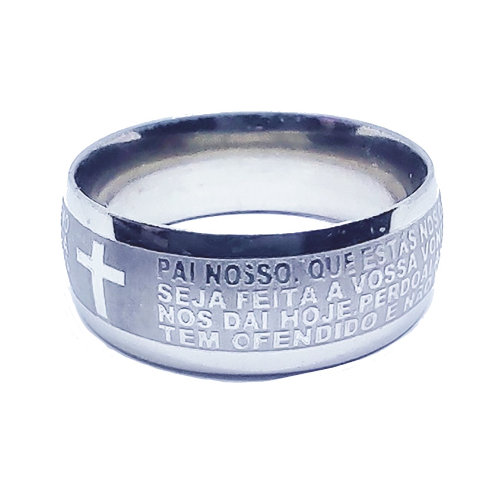 Anel Cristão Oração Pai Nosso Aço Evangélico Unissex A-84