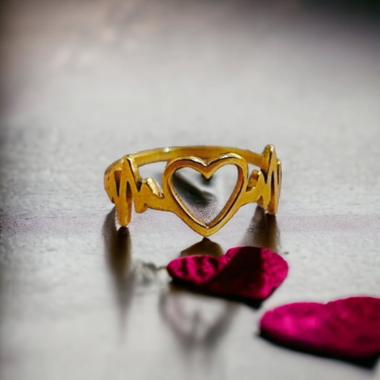 Anel Feminino Coração Vazado Batimento Cardíacos Dourado Banho Com Brilho Ouro 18K Aço Inoxidável 316L