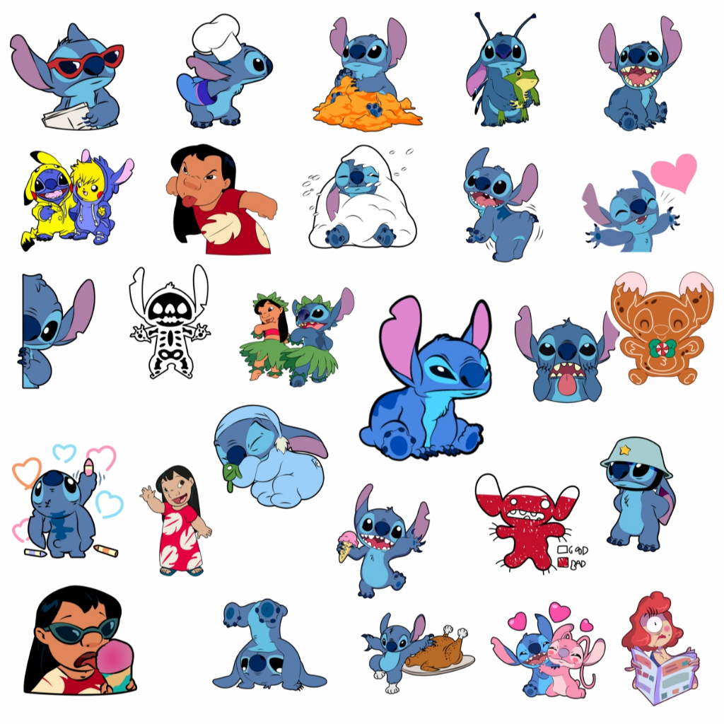 Kit Cartela de Stickers Divertidos Lilo e Stitch Adesivos de Series e Filmes Decorativos com 6 CM para Caderno Notebook Bicicleta Moto Carro