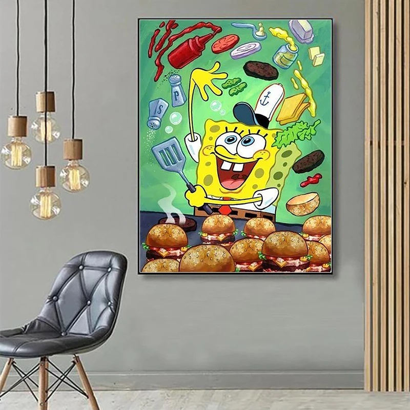 Quadro decorativo 1 peça 40x60 hambúrguer Bob esponja colorido decoração para casa sala quarto hall