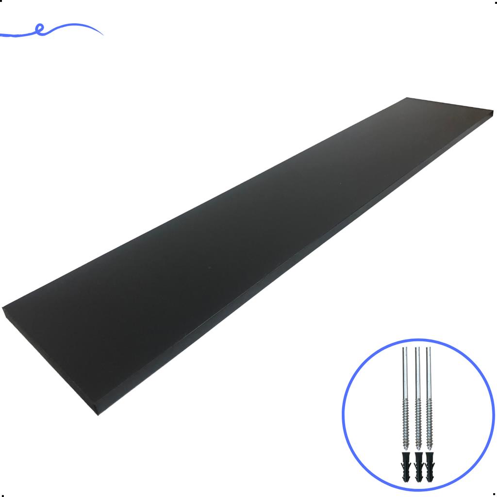 1 Prateleira 100x20 Com Suporte Invisível Flutuante Mdf Preto Organização Para Cozinha Banheiro Quarto Dormitorio Sala Lavabo Area Gourmet Escritorio Casa Lavanderia Parede Decorativa Tabua 100cm Madeira Flutuante 100 Cm x 20 Cm Preta