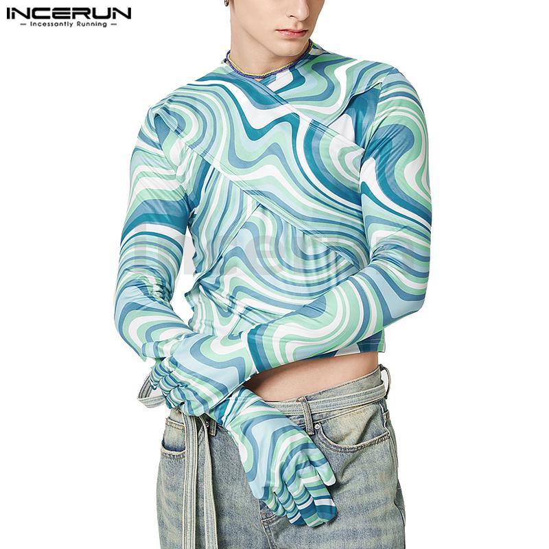 INCERUN Camiseta De Manga Longa Com Dedo Ondulado Da Moda Masculina