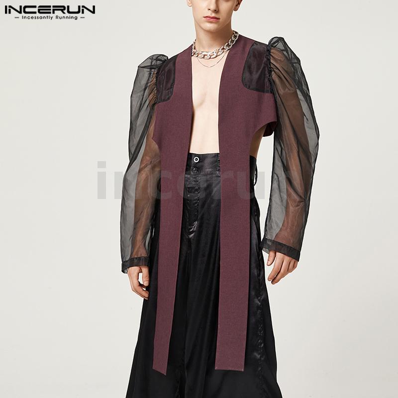 INCERUN Moda Masculina Europa Manga De Bolha Emenda Curta Irregular Casual Blazer