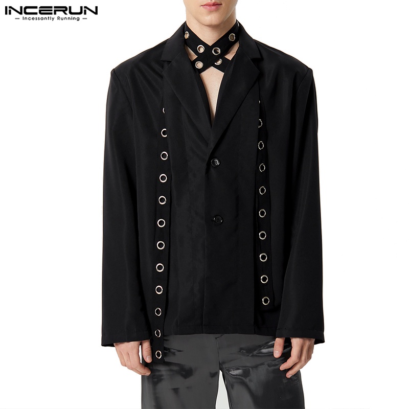 INCERUN Homens Vintage Manga Longa Silhueta Irregular De Duas Peças