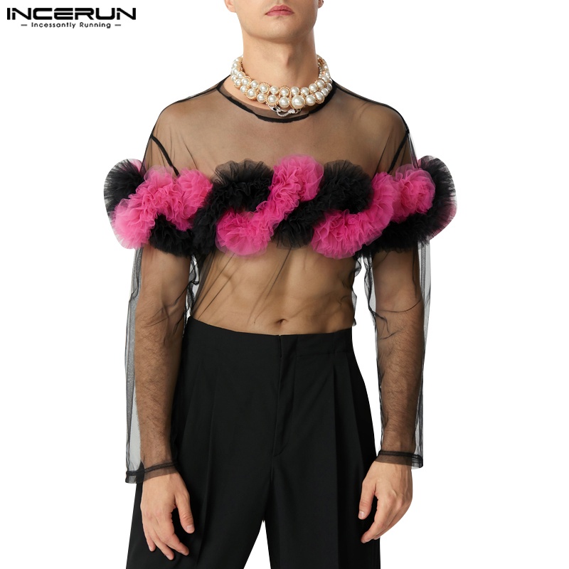 INCERUN Homens Vintage Fashion Rose Emendas De Malha De Manga Comprida