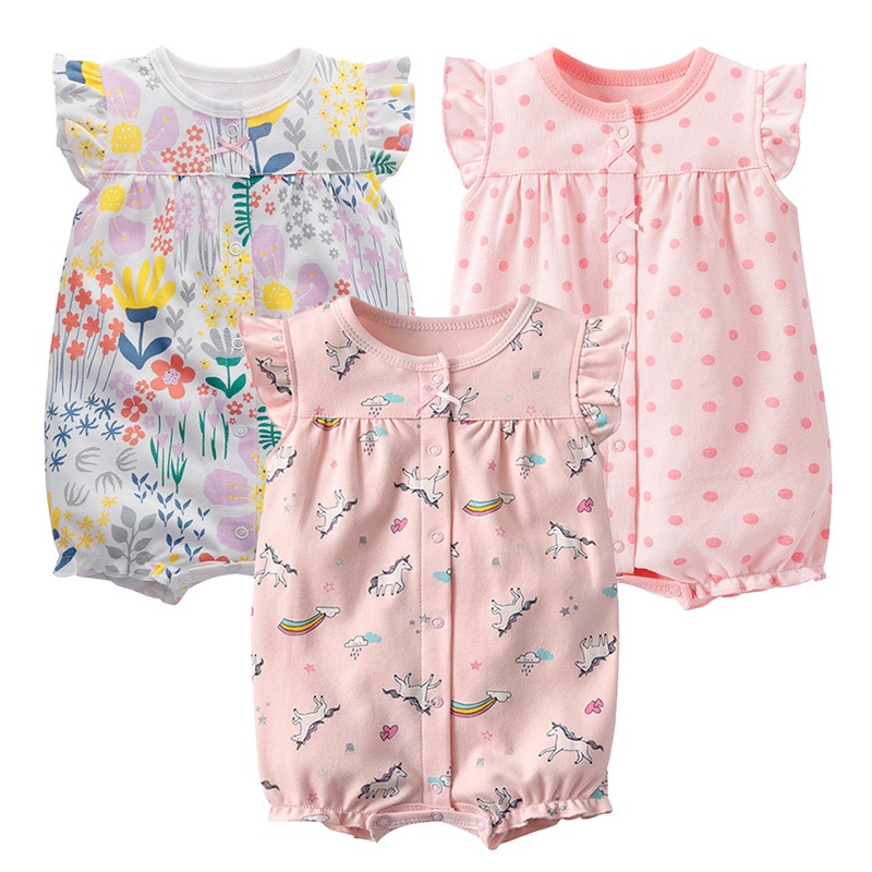 Macacão Manga Curta Crianças Roupas De Verão Algodão Bebê Recém Nascido Menina