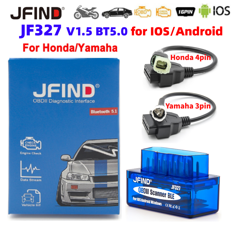 JFIND JF327 V1.5 OBD2 Leitor De Código De Falha Do Carro De Motocicleta Bluetooth5.0 Para Android/IOS Yamaha y15 3PIN 16PIN Honda 4PIN OBD 2 Cabo Ferramenta De Diagnóstico Automático PK ELM327