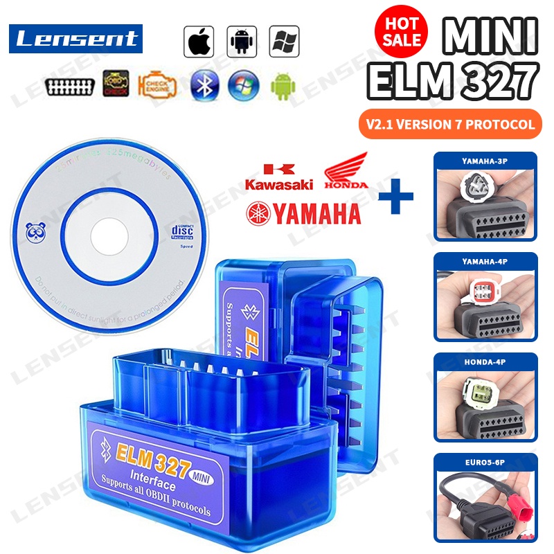 Lente OBD2 Mini ELM327 Yamaha Honda Motocicleta Diagnóstico Cabos De Motos 3 Pinos 4Pin Para 16Pin OBD2 Adaptador OBD Conector OBDII Scanner Carro AutTrouble V2.1 Bluetooth