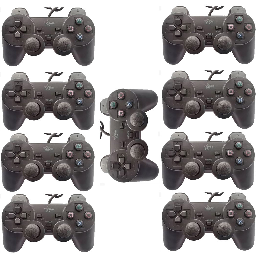 Kit 9 Controle para Playstation 2 / PS2 Com Fio - Cor preto fosco. Star
