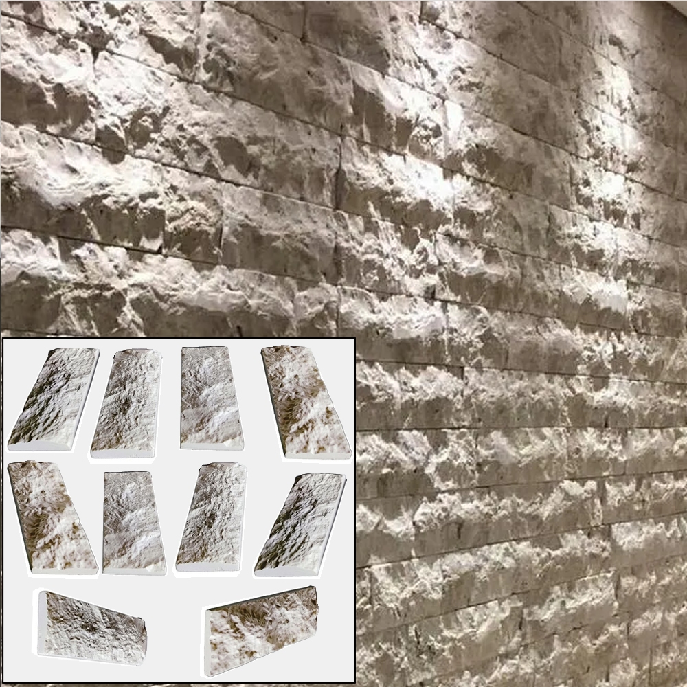 Forma de Gesso 3d Molde 10 Tijolo Rock Face Travertino 29x10cm ABS 2mm Molde para gesso/cimento/concreto F380-KT10
