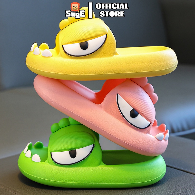 SUGE Novidade Dinossauro Meninas Da Moda Slippers De Dedo Do Pé Abertos E Leves Para Crianças Sola Macia Antiderrapante