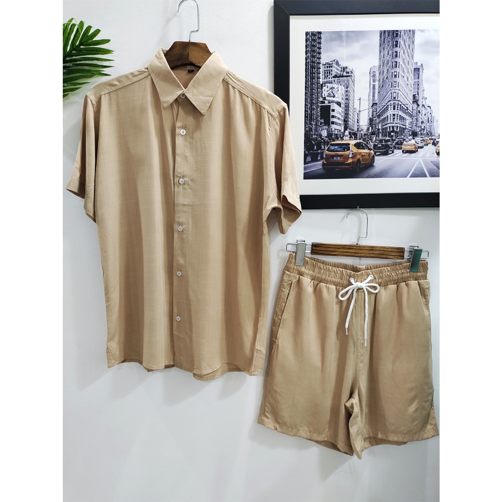 Conjunto Camisa e Short Liso Adulto Masculino Tecido de Viscose