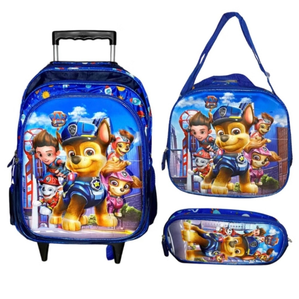 Kit Mochila+Estojo+lancheira 3D Premium Infantil Rodinhas Grande menino personagens Variados escolar