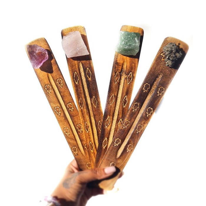 Incensario De Madeira/queimador De Incenso/ Porta Incenso De Regua Com Pedra Natural Cristal Natural