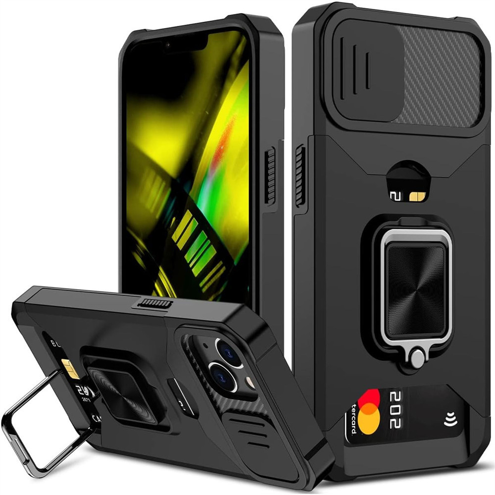 Para iPhone 15 14 13 12 11 Pro Max , X/XR/Xs 7plus/8plus Estojo Com Tampa Deslizante Câmera E Porta-Cartões Proteção À Prova De Choque Serviço Pesado Anel Magnético Telefone