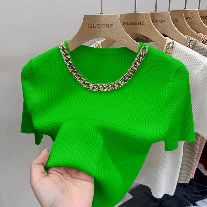 Camisola de malha feminina curta high-end 2023 novo nicho estilo francês topo-3376