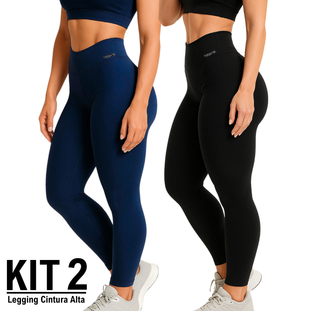 Kit 2 Calças Legging Academia Feminina Esportiva Fitness Yoga Levanta Bumbum Zero Transparência