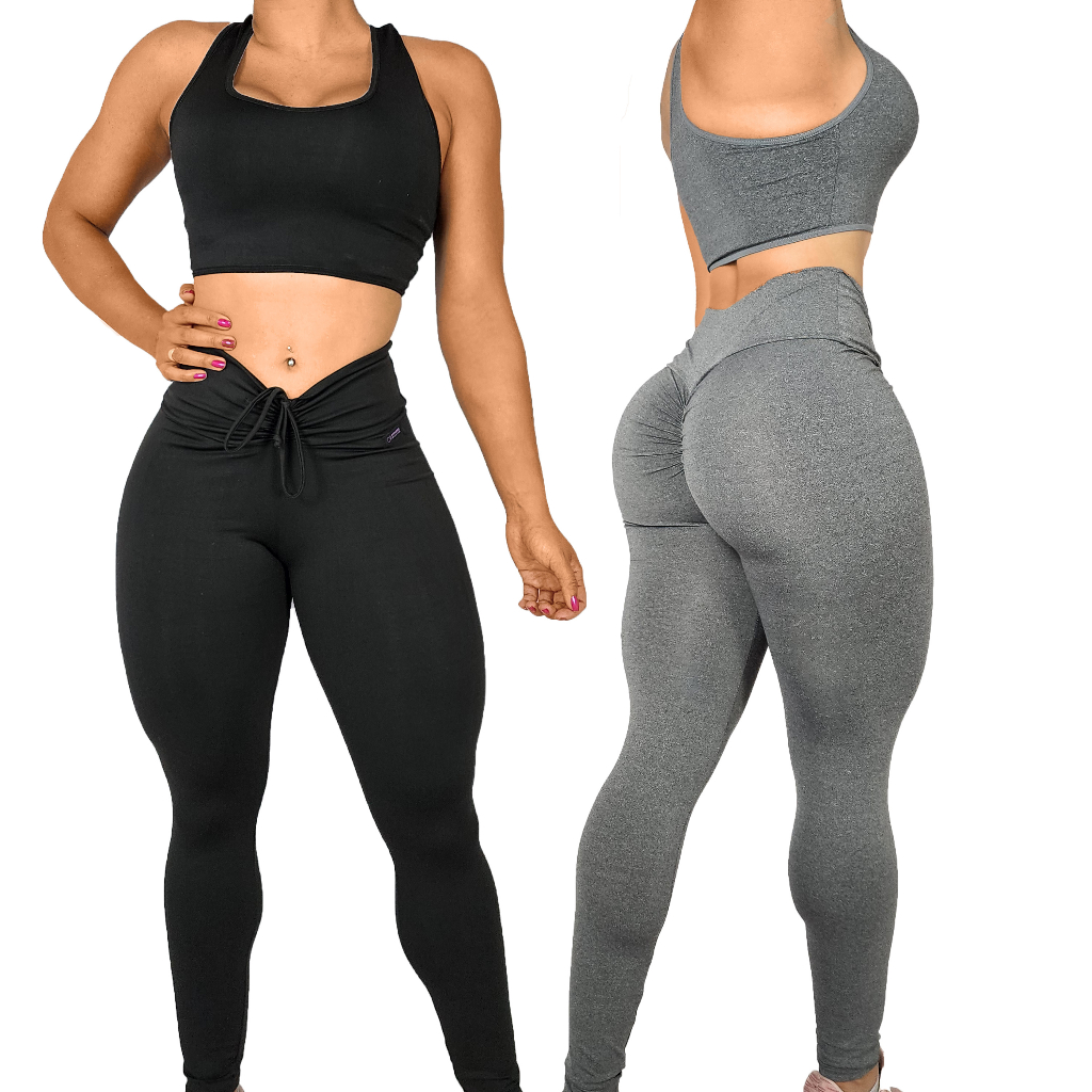 Kit 2 Conjuntos Feminino Academia Top e Legging Levanta Bumbum