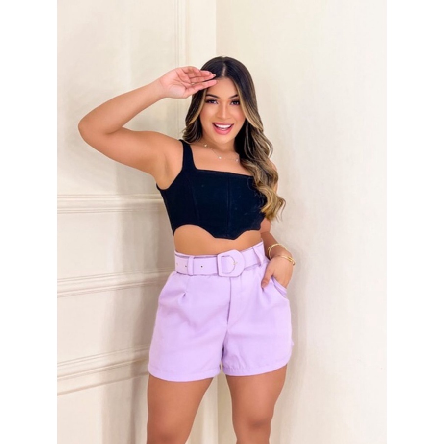 Short Feminino Alfaiataria Social com Cinto Cintura Alta PROMOÇÃO