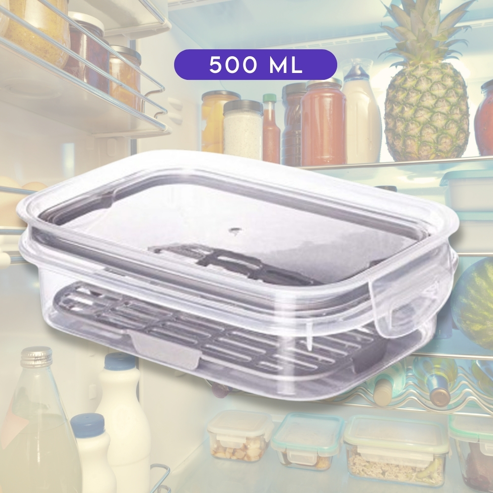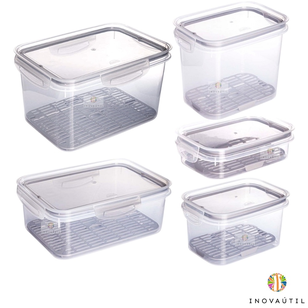 Organizador de Geladeira Pote Hermético e Tampa Com Trava Separador de Água Interno Frutas Saladas