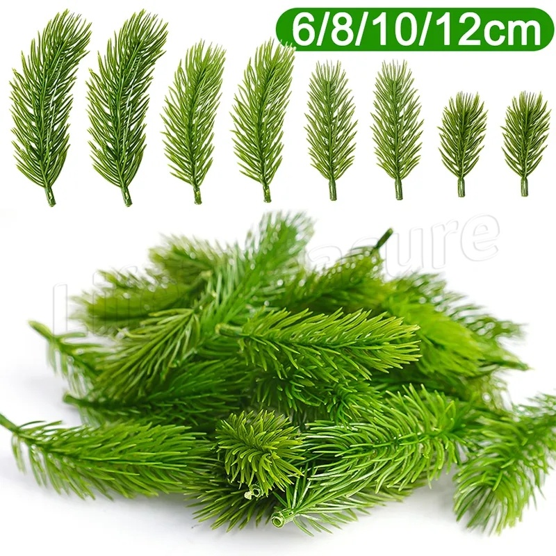 [Featured] 6/12cm Folhas De Pinheiro Falsas De Plástico Artificial/Ornamento De Festa Em Casa/Agulhas Simuladas Para Decoração De Árvore De Natal/Ramos Verdes