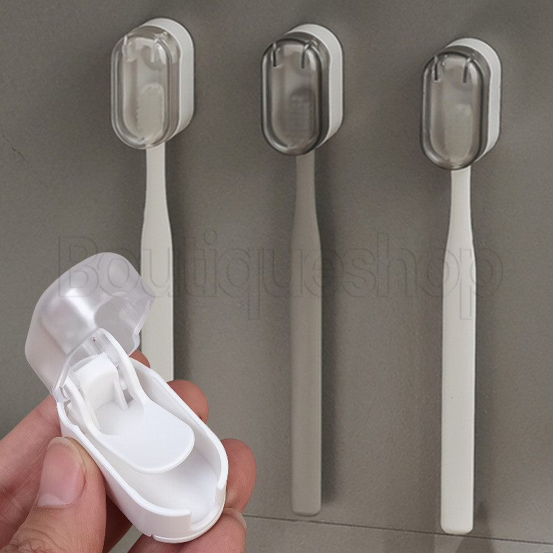 [Featured] Dampproof Prateleira De Armazenamento À Prova De Poeira-Suporte Para Escova De Dentes Elétrica Montada Na Parede Com Tampa Flip Automática-Cabide Organizador De Portátil