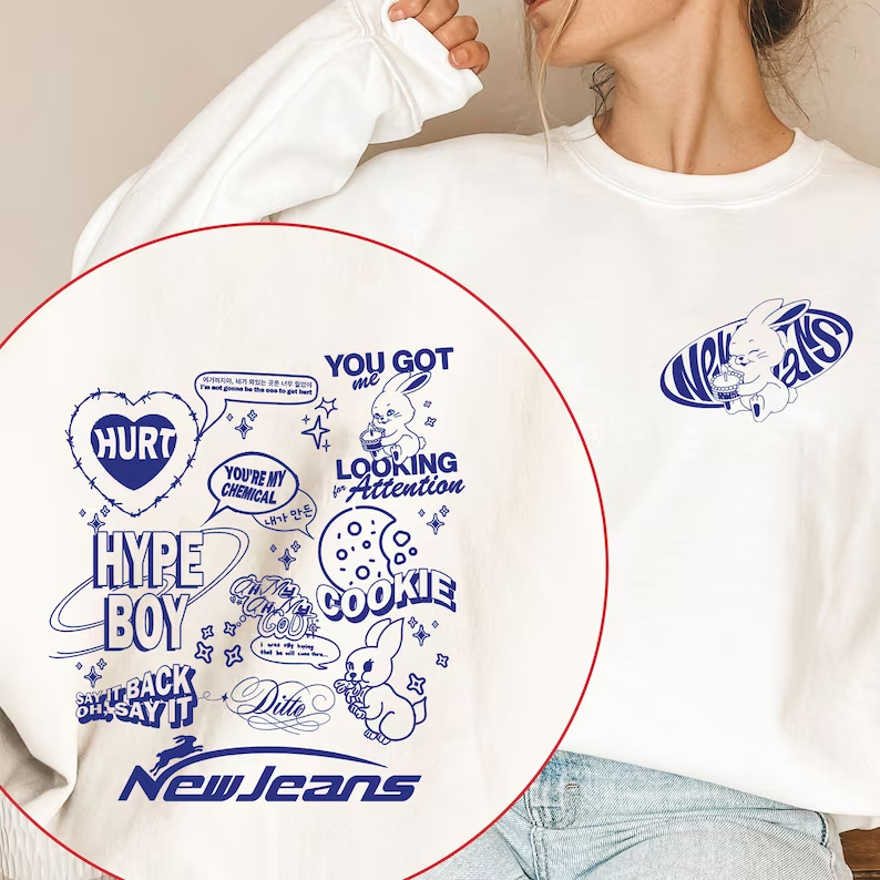 Moletom Gola Redonda Algodão Peluciado Unissex Grupo Kpop New Jeans Musics
