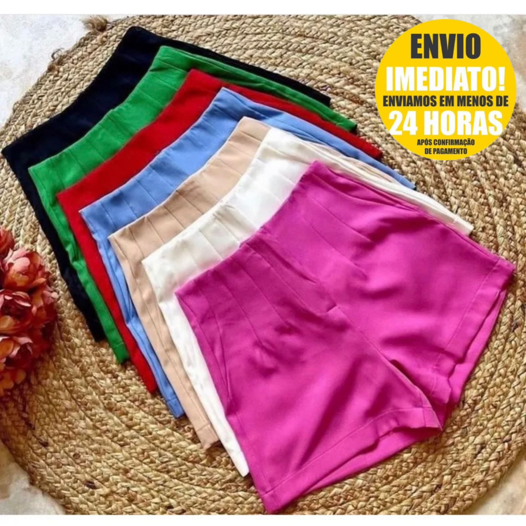 Kit 2 Short Alfaiataria Feminino Cintura Alta Com Bolso e Zíper na Lateral